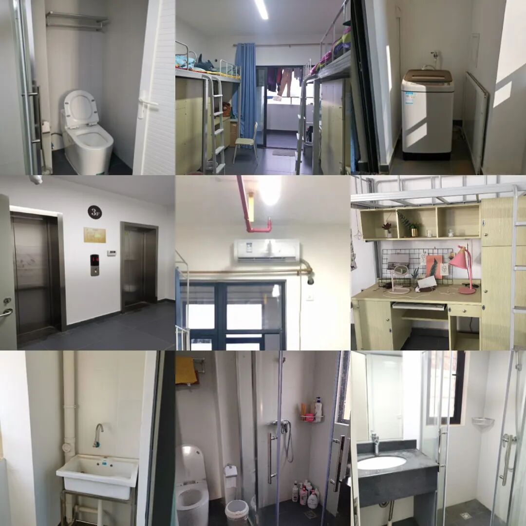 住宿费:四人间(1500元/年)六人间(1200元/年),宿舍楼均有电梯、上床下桌、每间配套独立空调、洗衣机、阳台。