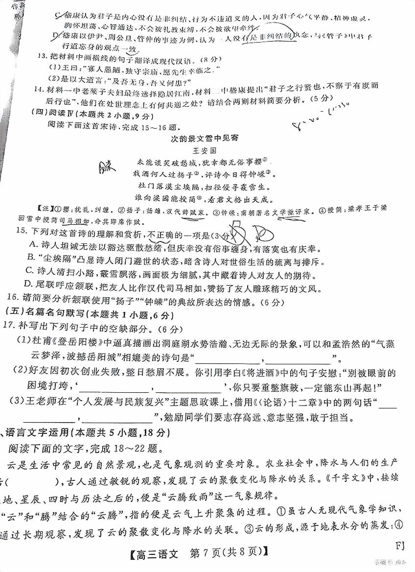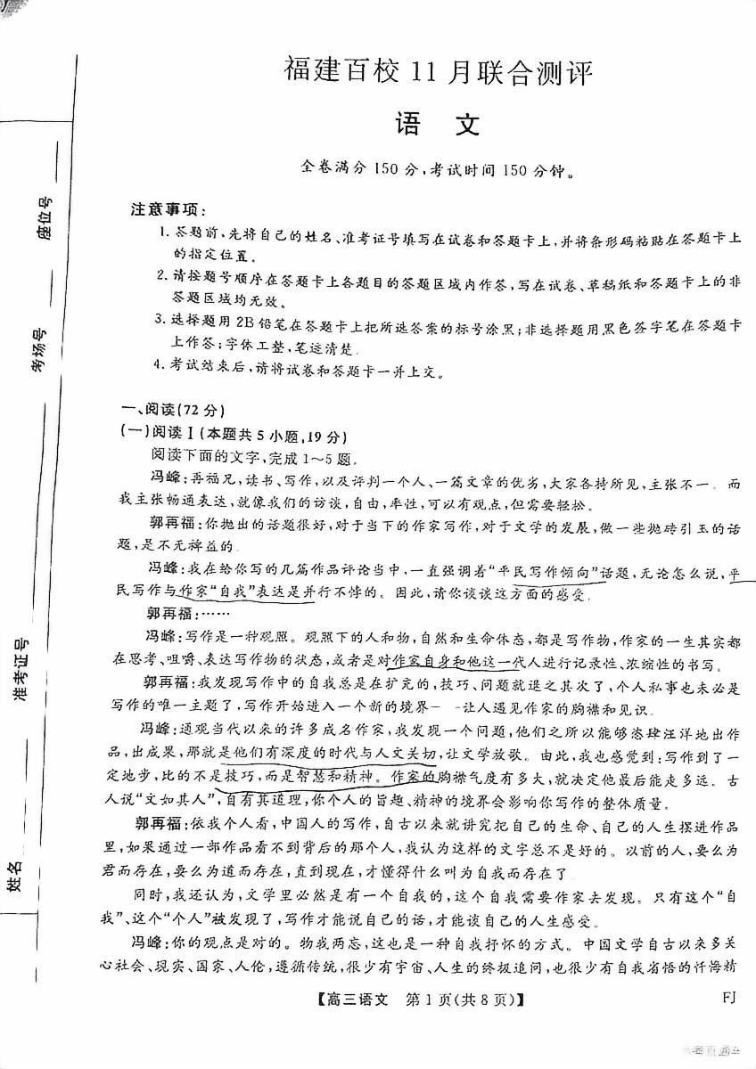 【已更新】2026福建百校高三11月联考试题及答案(语文)