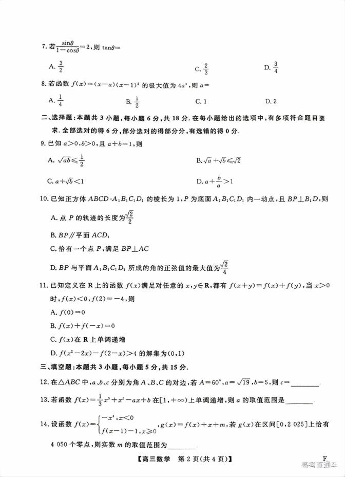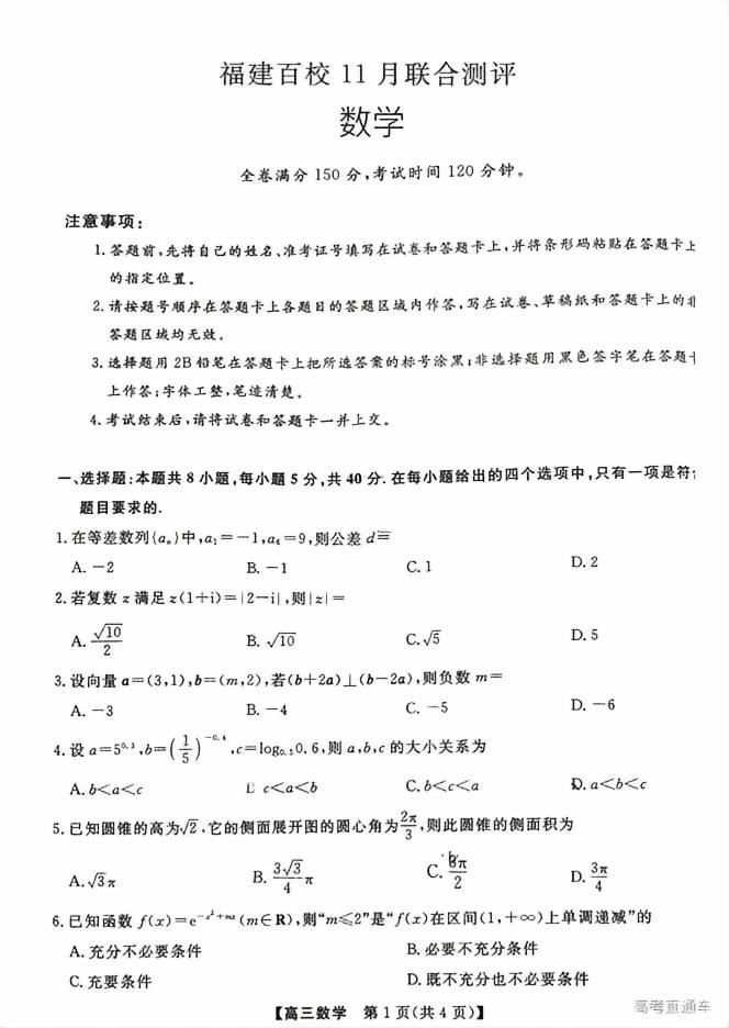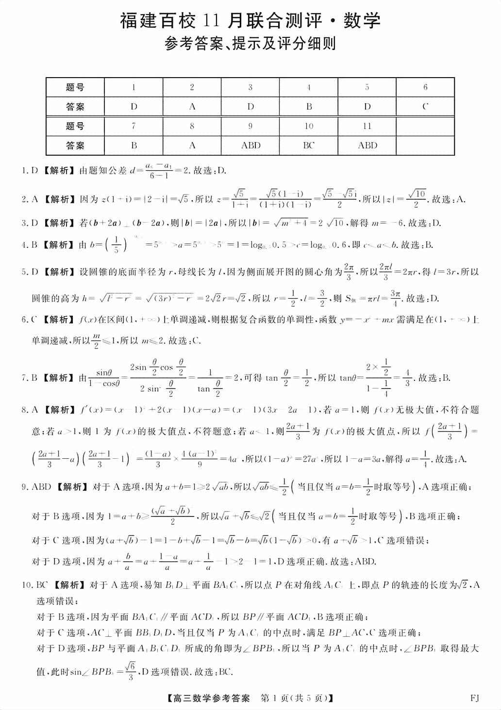 【已更新】2026福建百校高三11月联考试题及答案(数学)