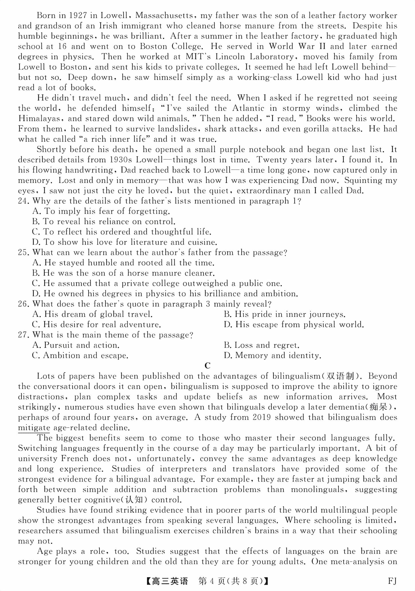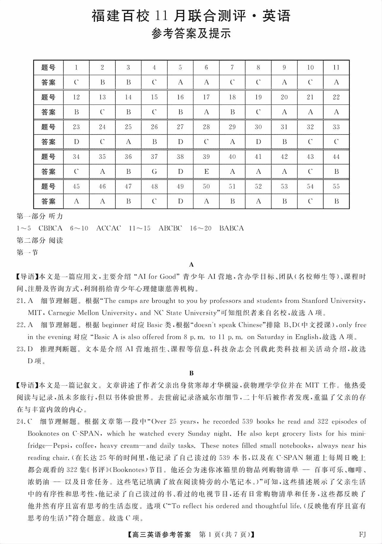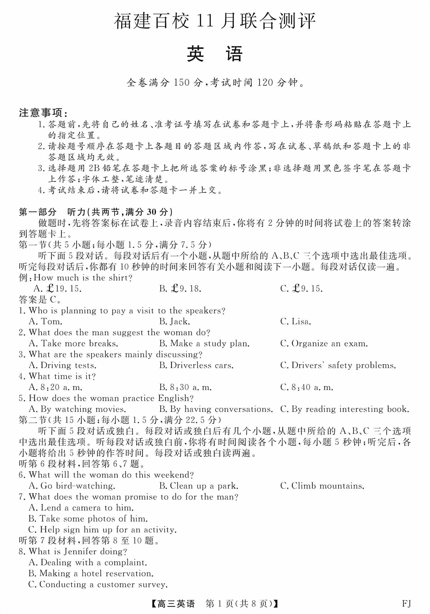 【已更新】2026福建百校高三11月联考试题及答案(英语)