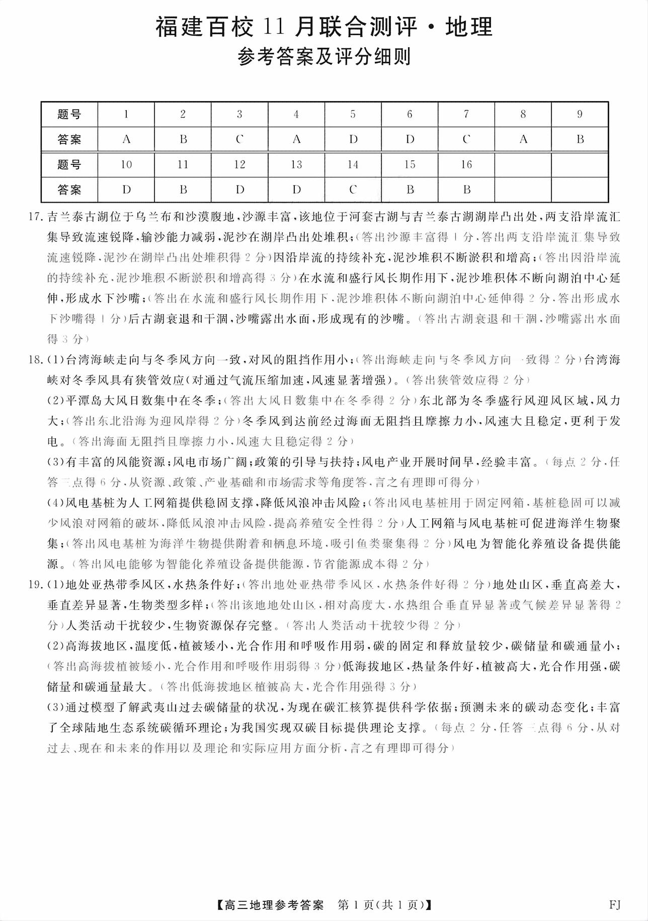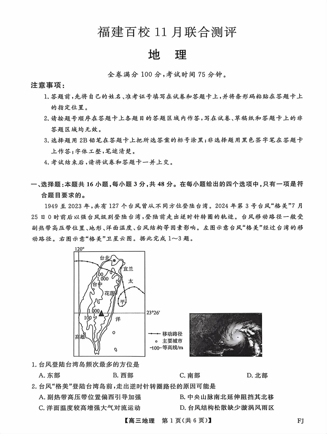【已更新】2026福建百校高三11月联考试题及答案(地理)