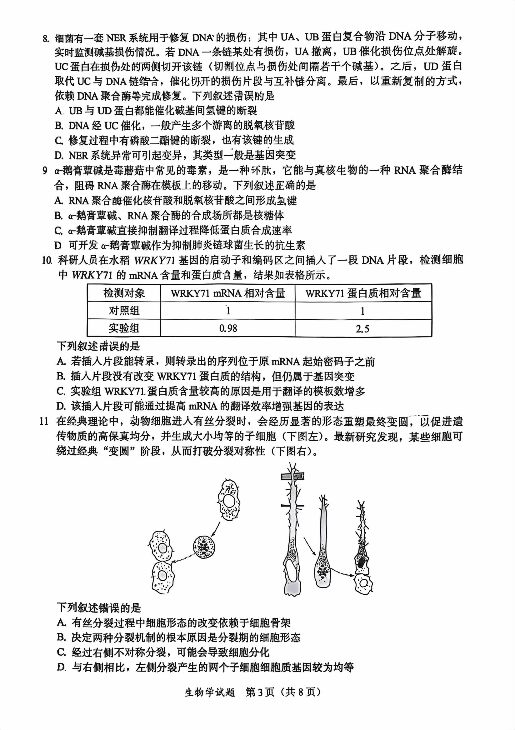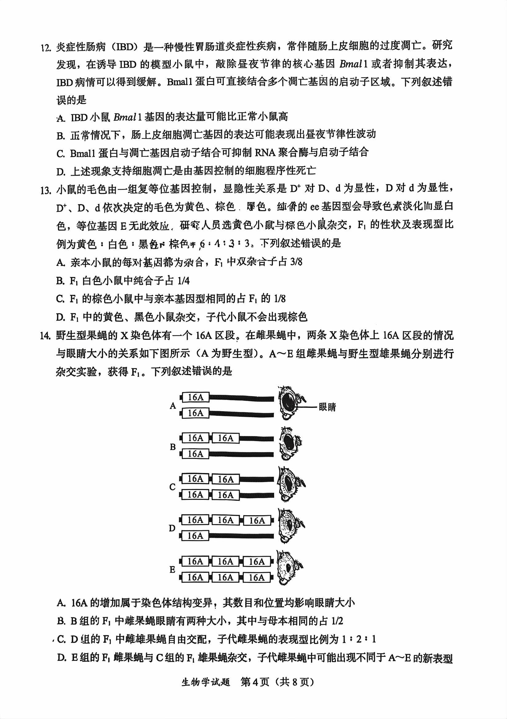 类型:质检 科目:生物 地市: 全省