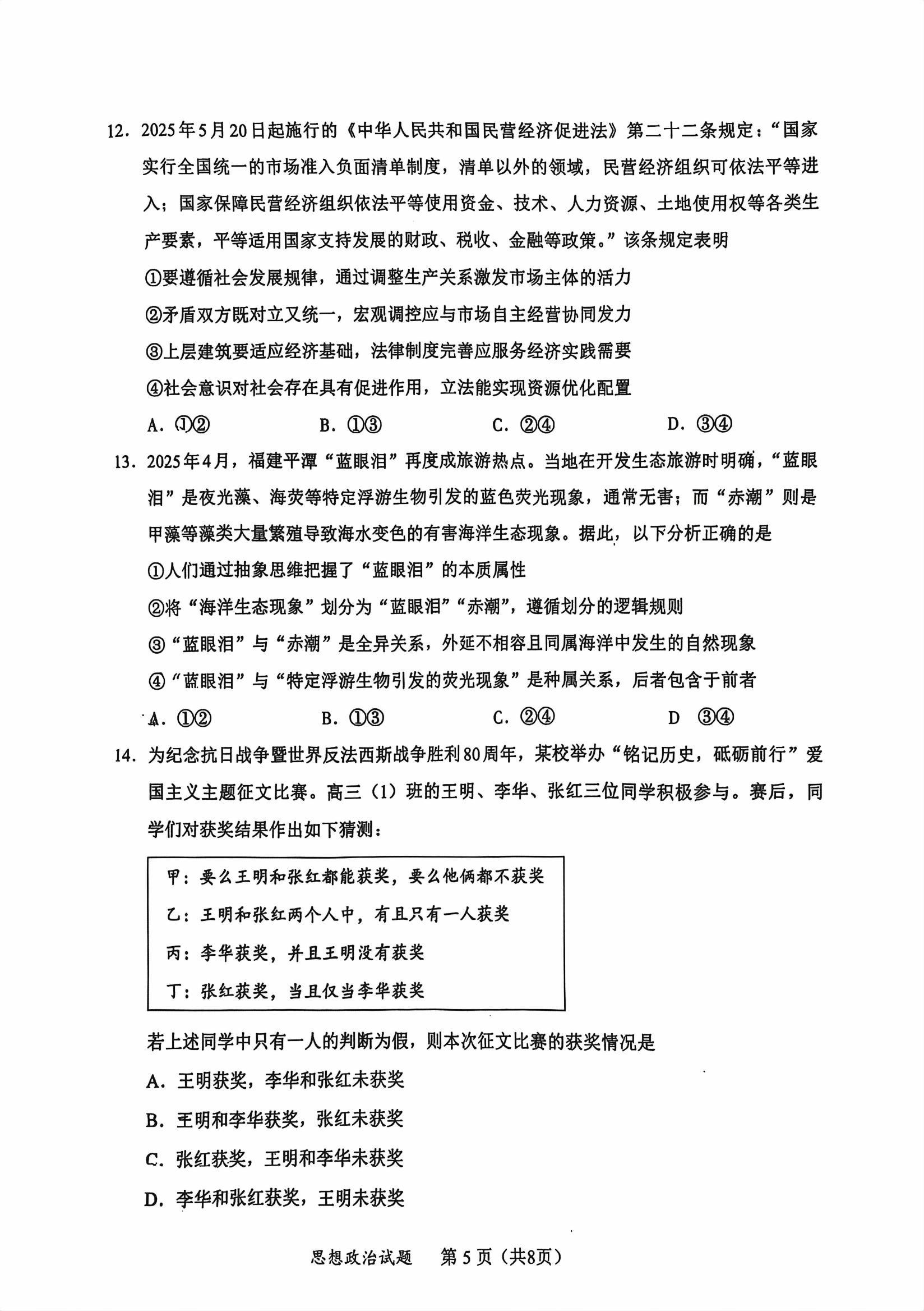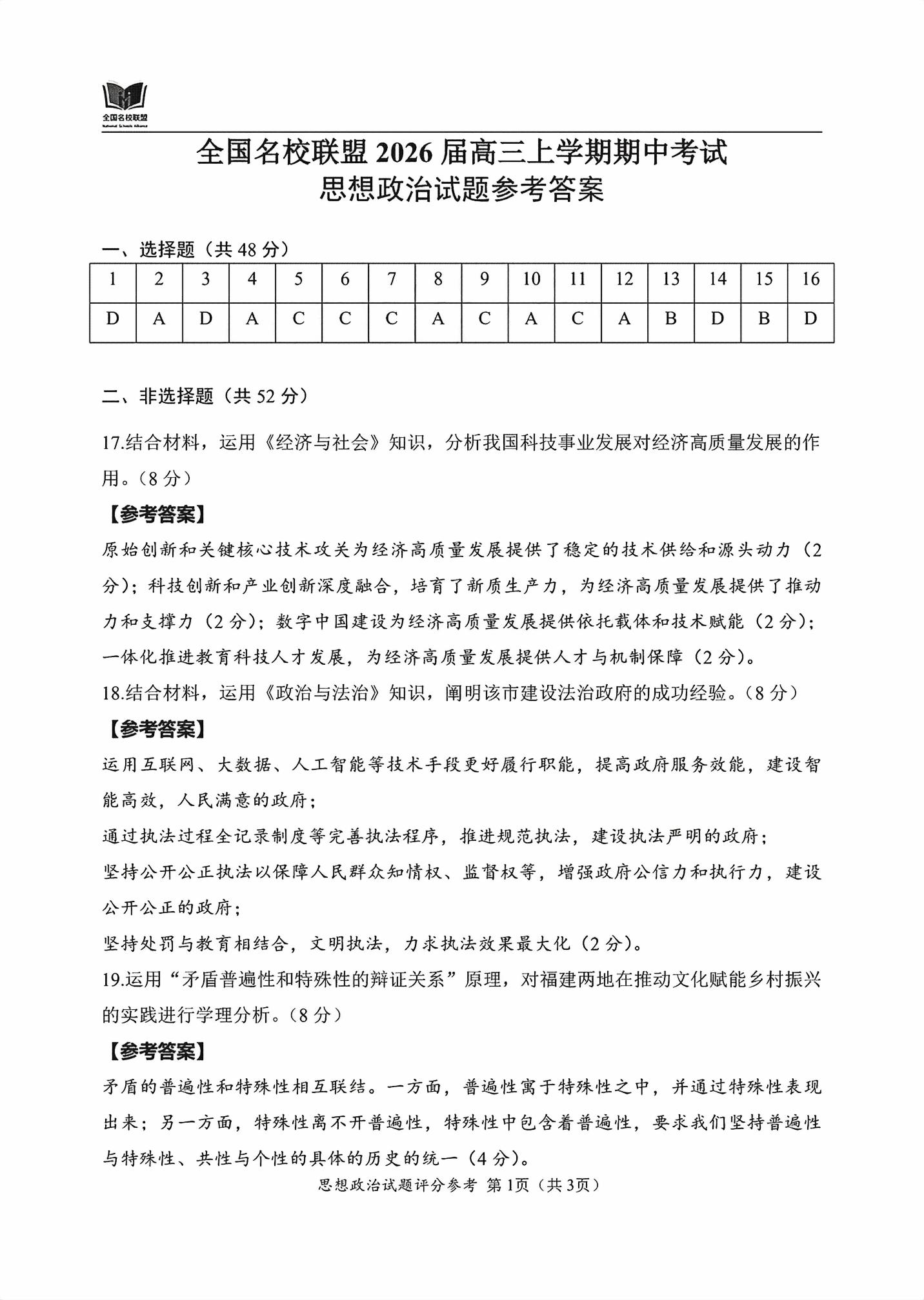 【已更新】2026福建名校联盟高三11月期中考试题及答案(政治)