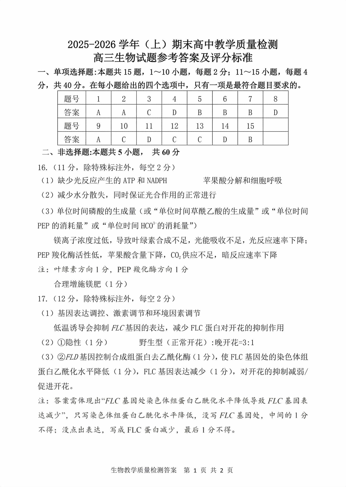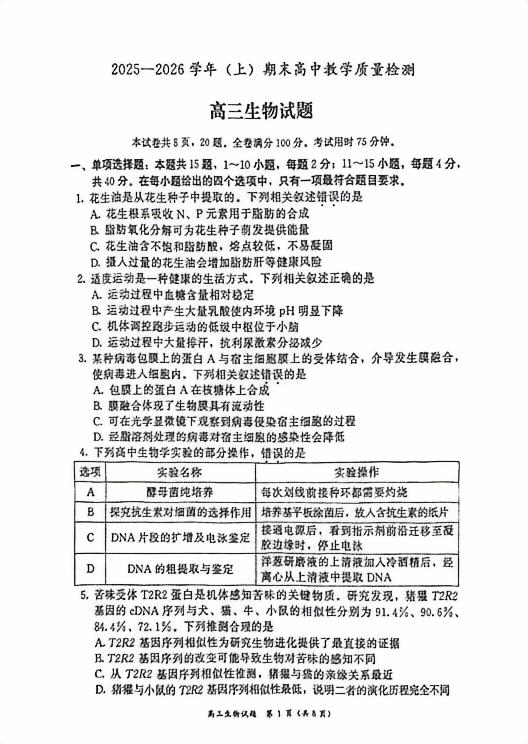 【已更新】2026漳州(2月)二检试题及答案(生物)