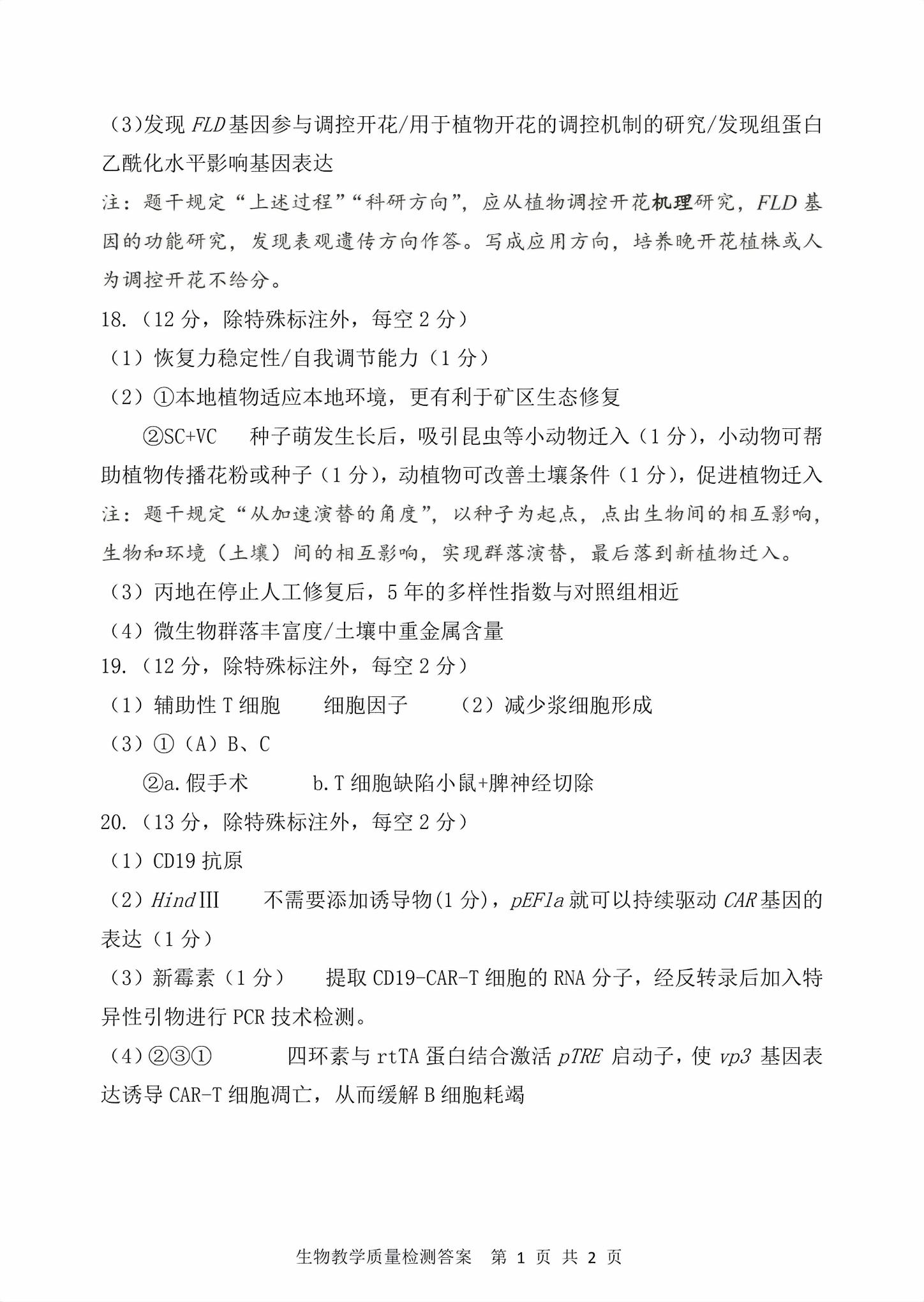 类型:质检 科目:生物 地市: 漳州