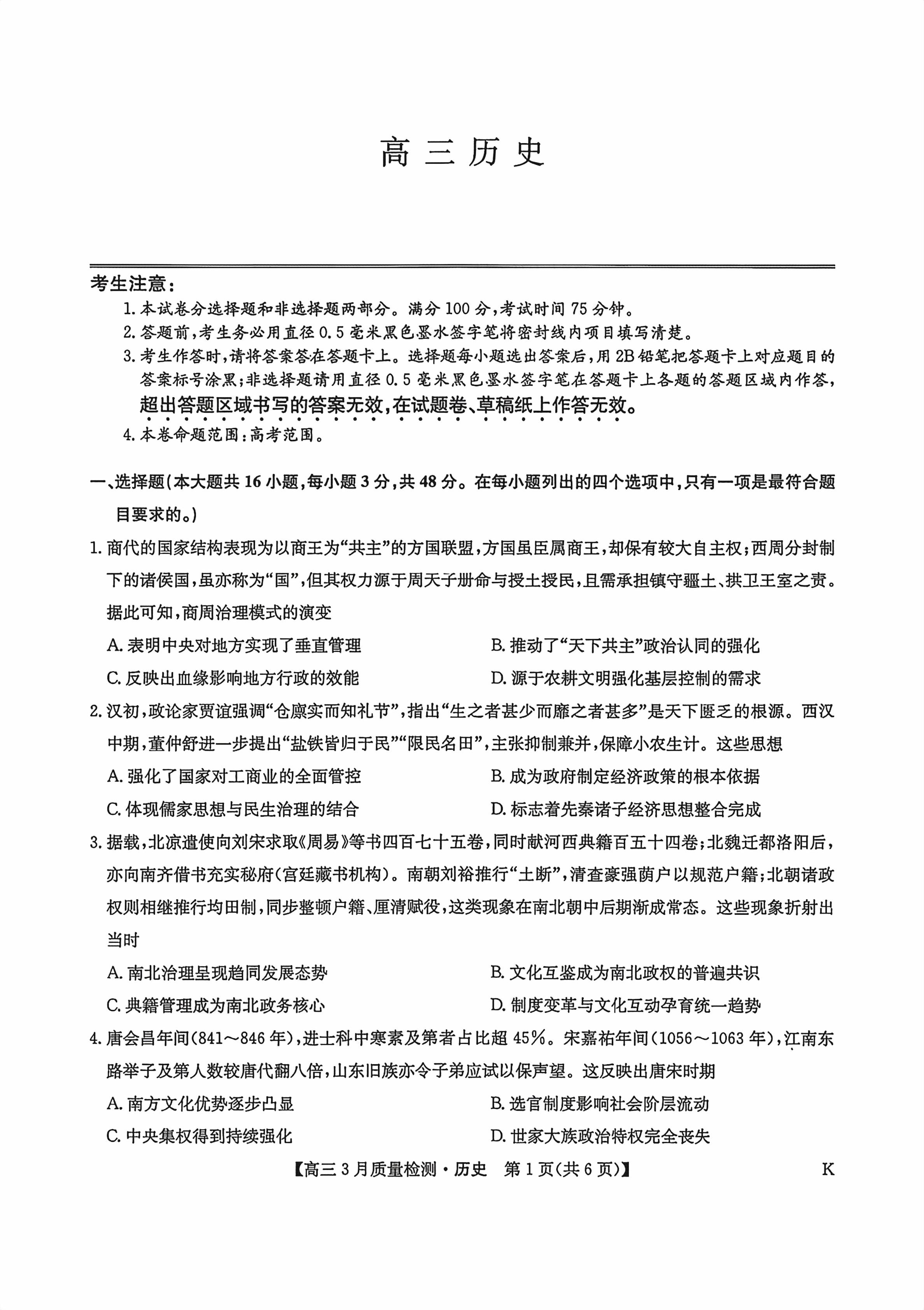 【已更新】2026福建九师联盟高三2月联考试题及答案(历史)