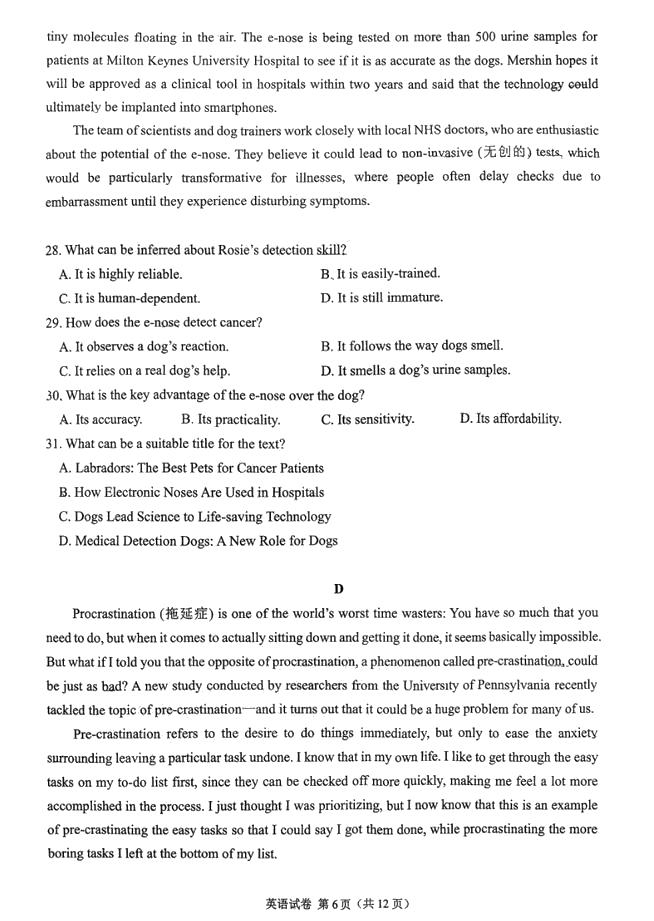 高考试卷