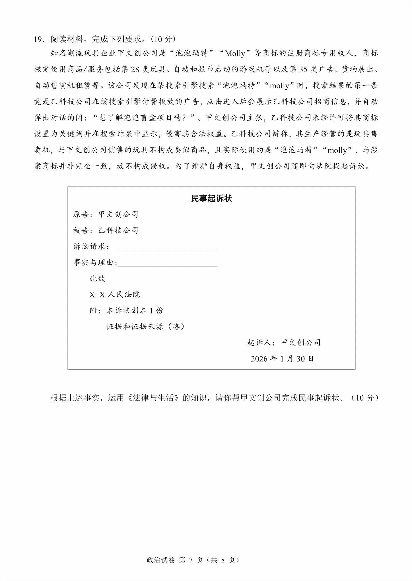 > 试卷内容