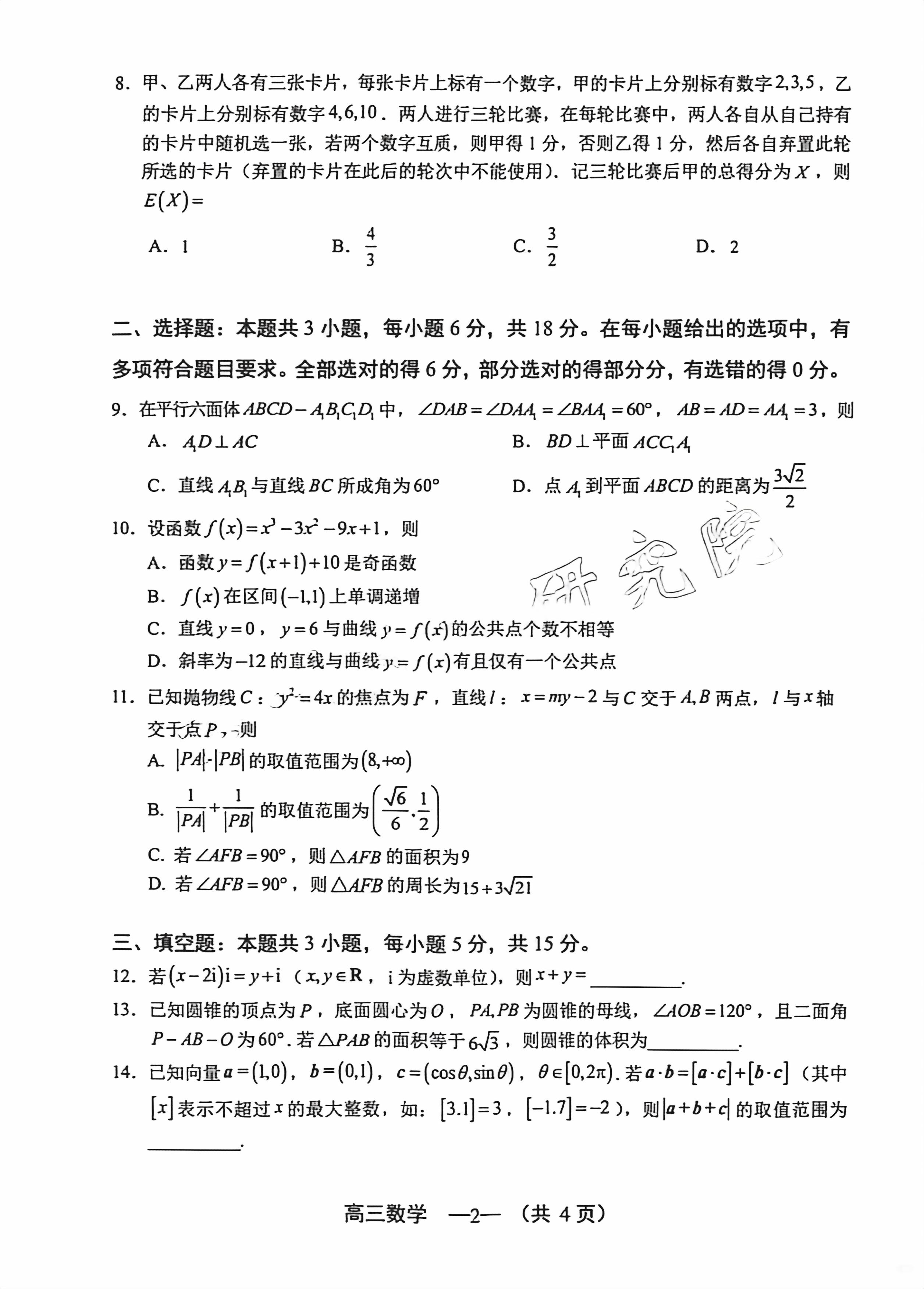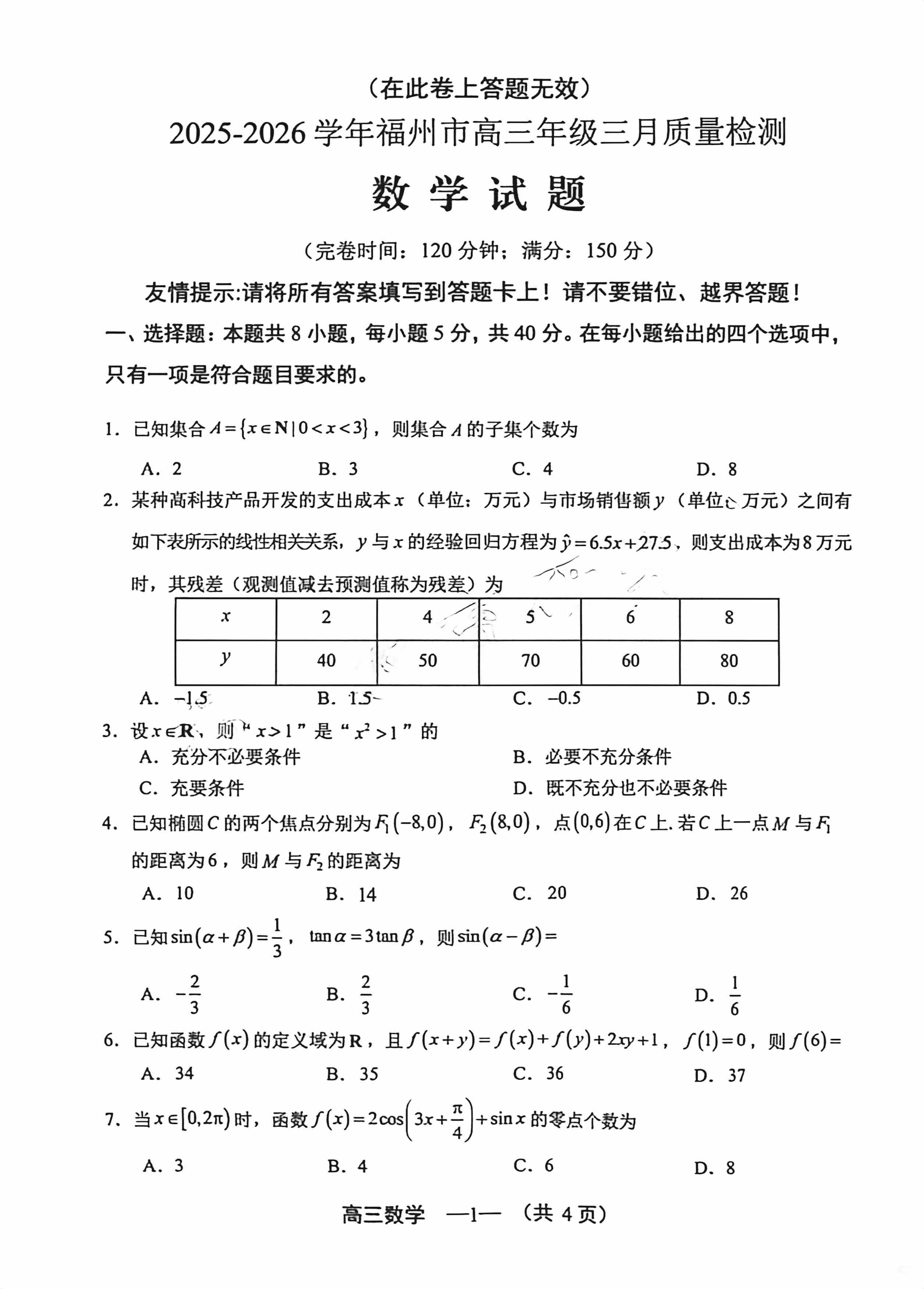 【已更新】2026福州二检试题及答案(数学)