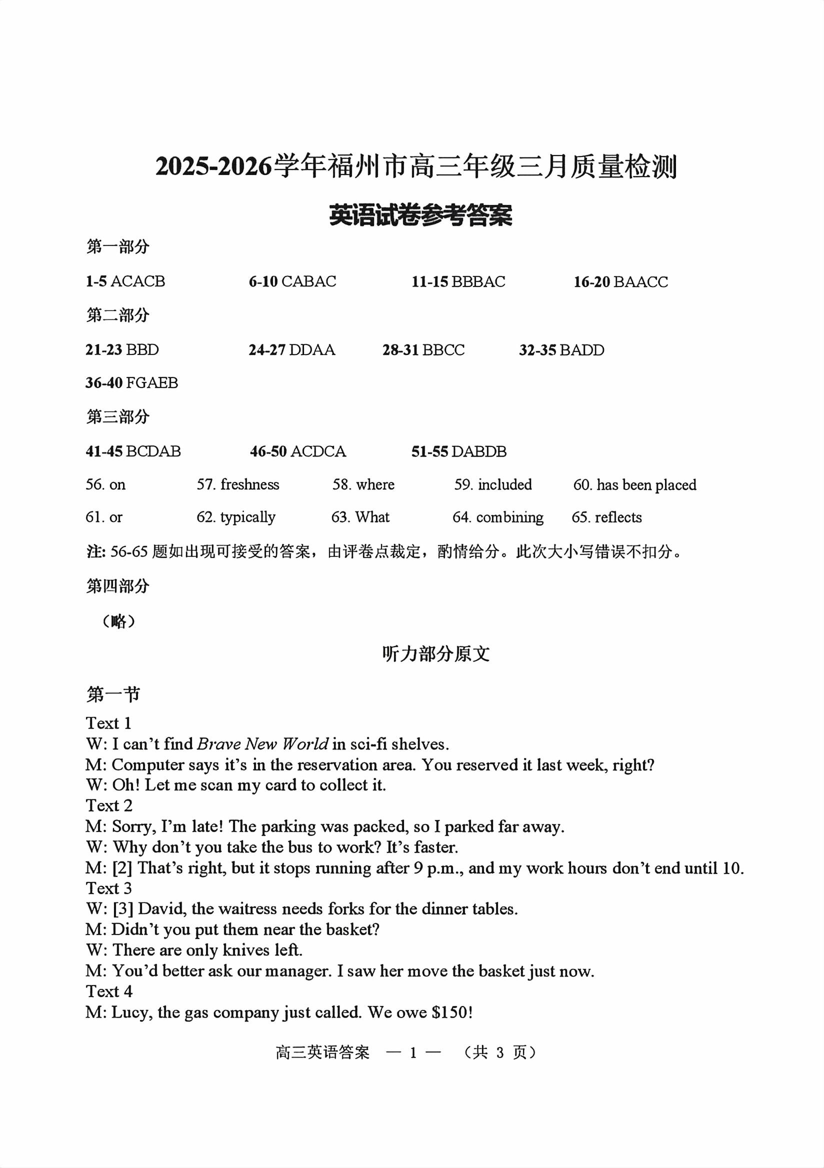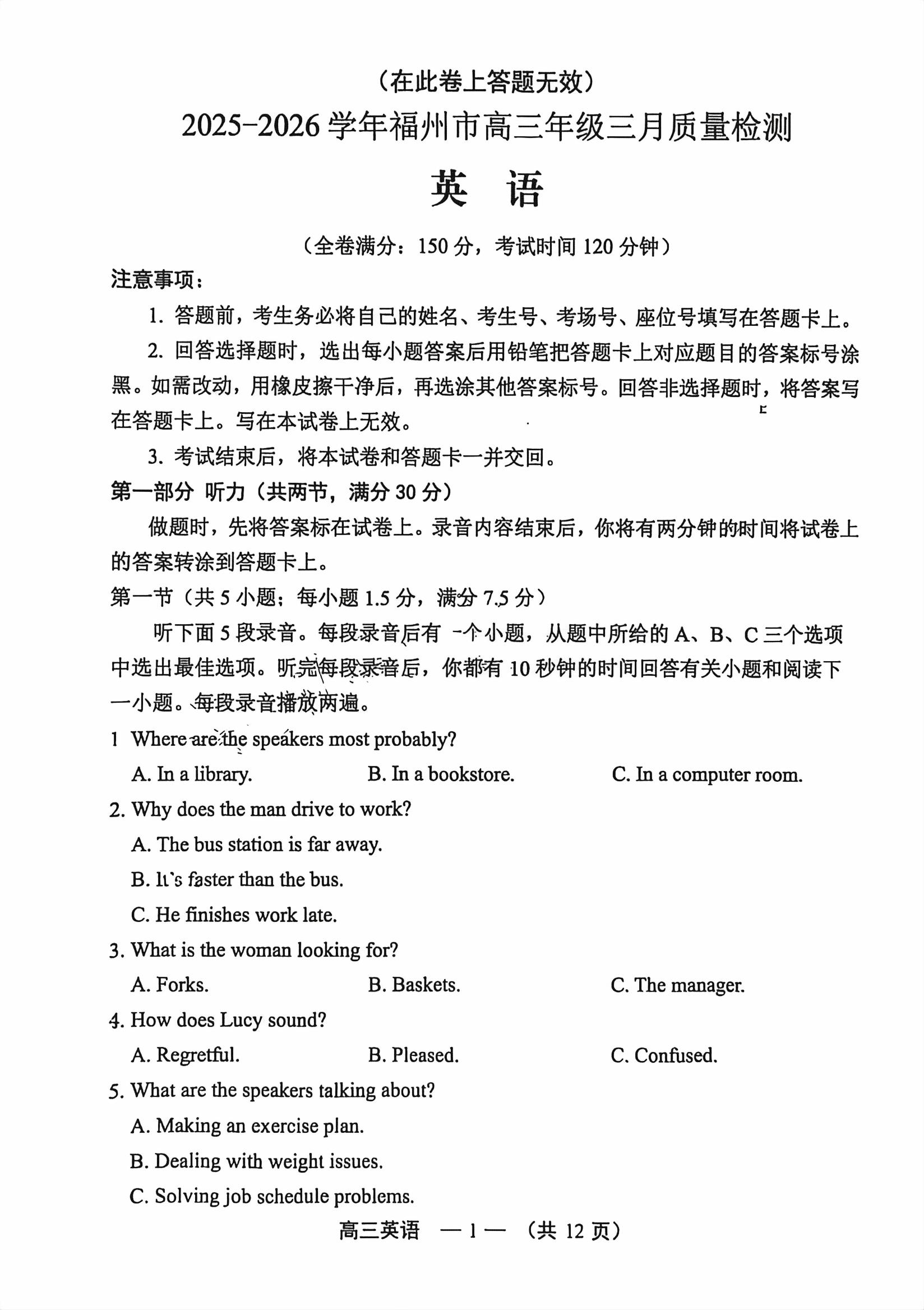 【已更新】2026福州二检试题及答案(英语)