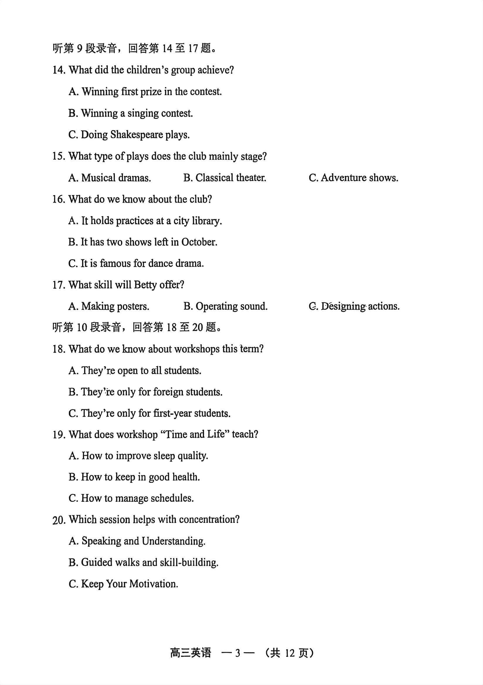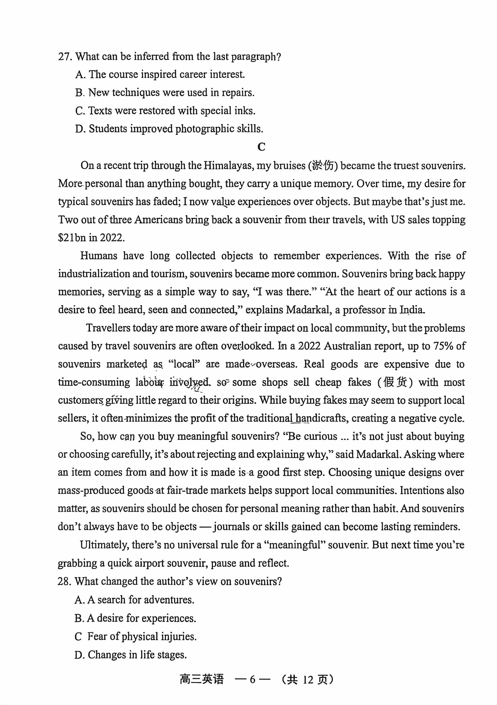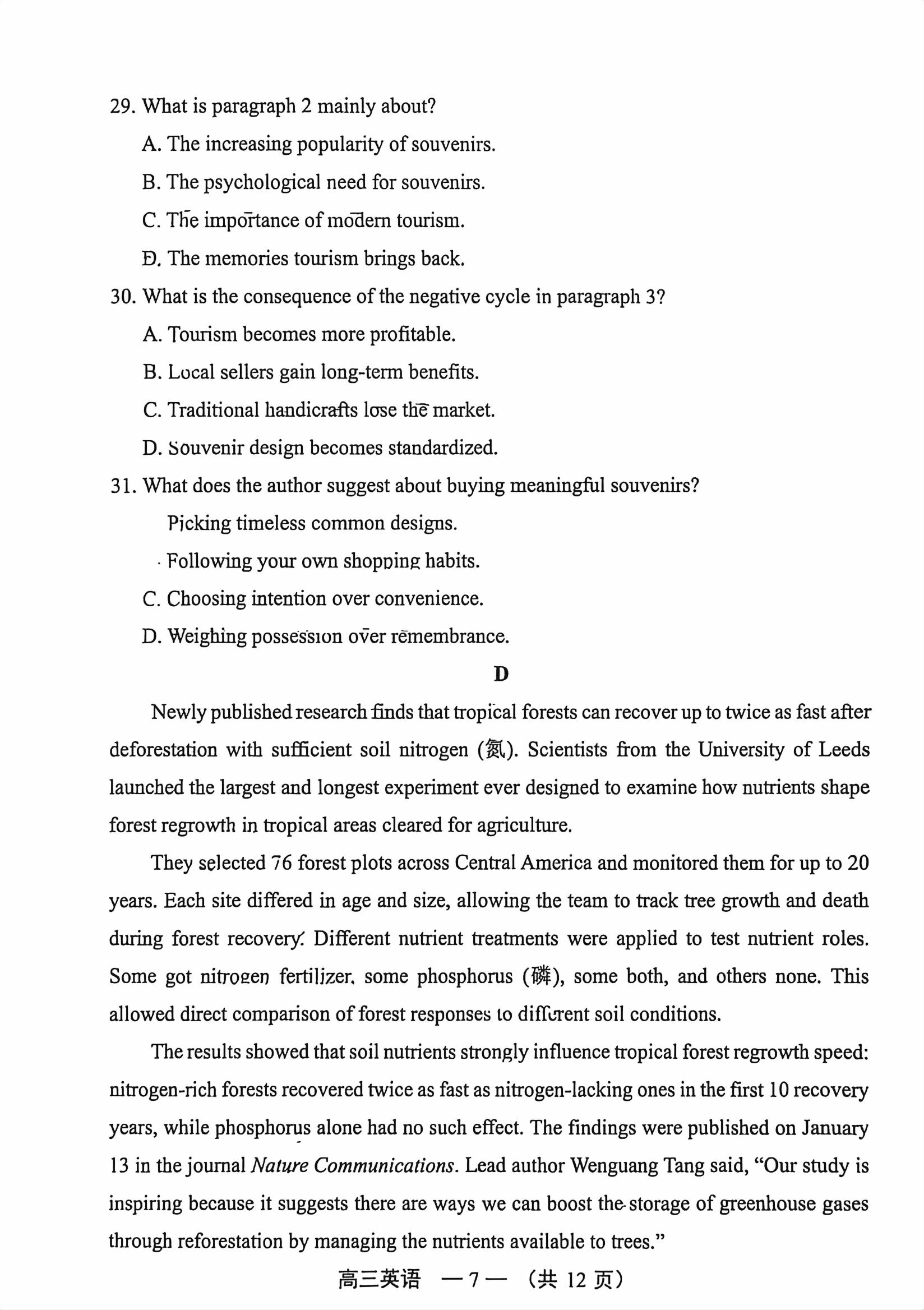高考试卷